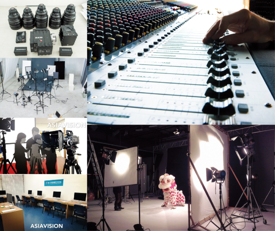 亚视传媒艺术学院与国际传媒集团密切交流,采用先进的影视制作设备,组织学生边学理论、边进行专业实操。学生可直接参与传媒作品的策划、拍摄、剪辑、传播。亚视拥有 RED、CANON、Blackmagic三大前期设备体系下的专业级电影摄影机。同时,亚视为学生提供广播级的录音设备、苹果机房与非线编剪辑室。亚视紧跟时代的创作步伐,拥有虚拟现实(VR)、水下摄影等高端电影、电视特效设备,时刻让学生走在技术学习的最前沿。
