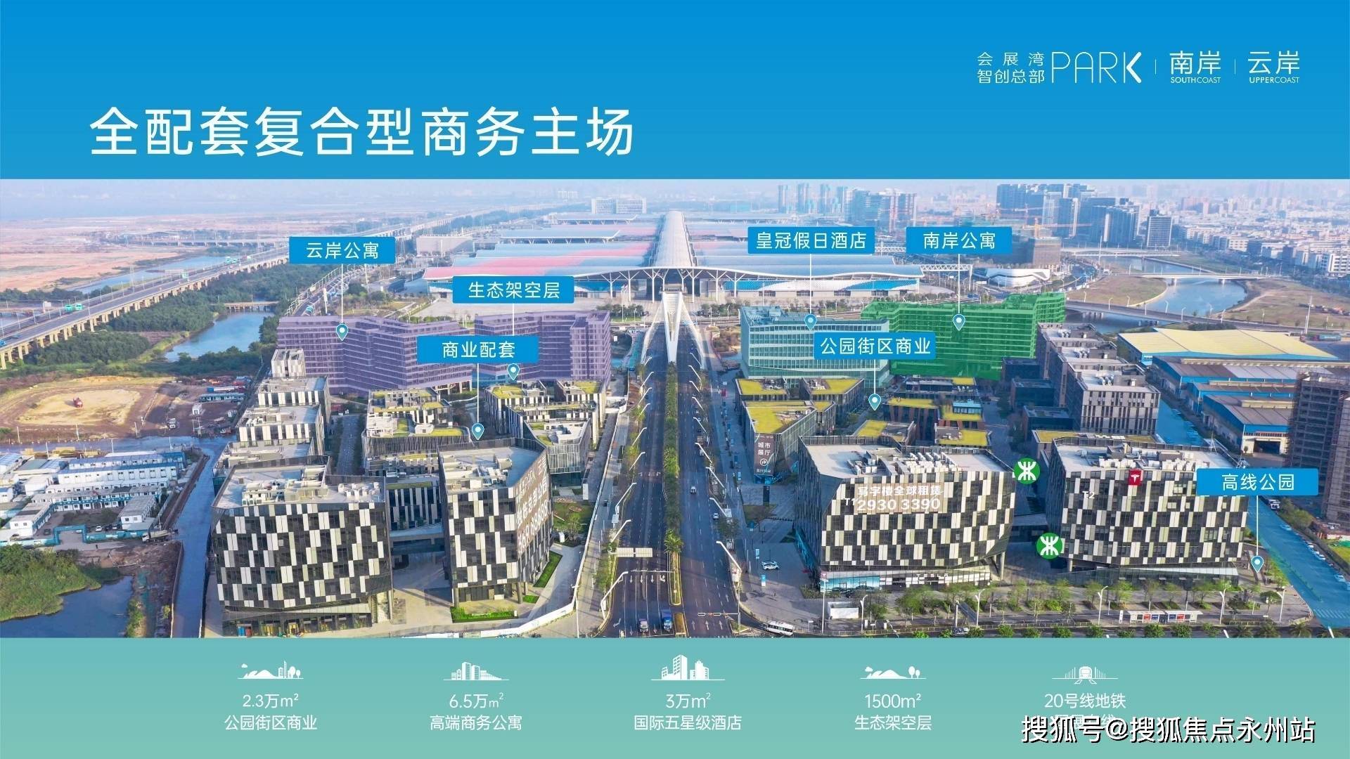 【会展湾·南岸广场】是300万㎡会展主题综合体的首发之作,项目定位为会展+总部+生态三位一体商务集群。